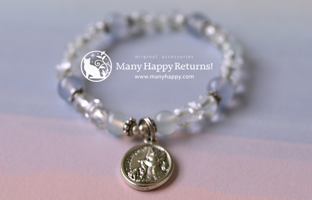 | 大天使ミカエルのメダイ☆ブルーオパール&クリアクォーツスターカット&ブルーカルセドニー☆シルバー925ストレッチブレス 8,800円 限定 1個 |