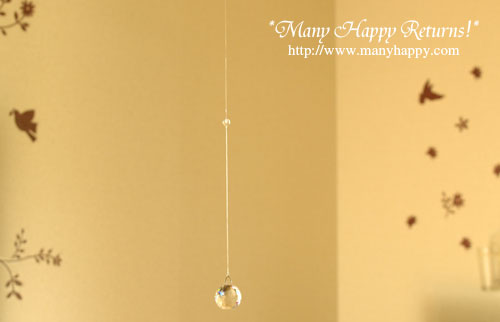 3cmのカットの美しい大きめスワロフスキーに8ミリの水晶を合わせたサンキャッチャー。